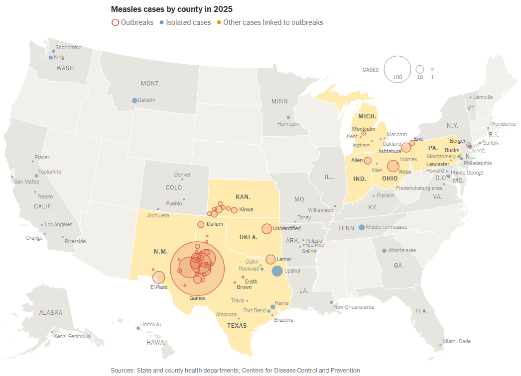 and 3 reported deaths. Measles have been reported in 29 states now.