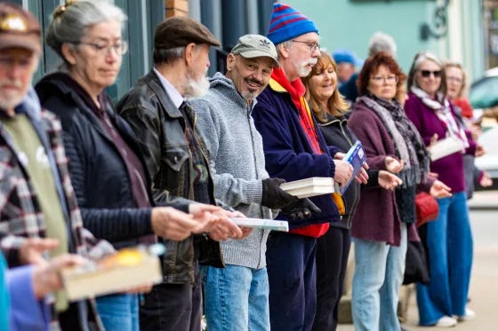 People help move books for Serendipity Books. Photo by Burrill Strong from https://buff.ly/aUgRSBc