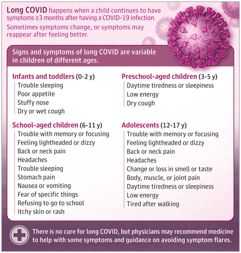 "A second study in JAMA this week showed that Long COVID is common in children, affecting 10% to 20% of children who have had COVID. Almost 6 million children in the U.S. are impacted by Long COVID, which is higher than the number of children diagnosed with asthma, the most common chronic condition in childhood. Long COVID symptoms in kids were found to depend on the child's age.