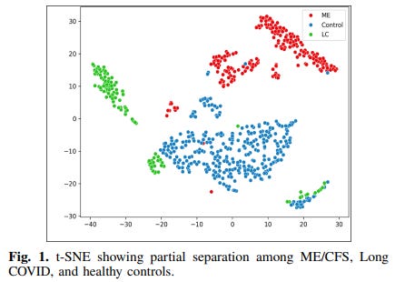 "A preprint in BioRxiV, reports that a high school student named Piyush Acharya worked with Dr Derek Jacoby of the University of Victoria to develop Mobius, a transformer-based AI model that used blood DNA methylation data from 852 individuals to distinguish ME/CFS, Long COVID, and healthy controls with 97% accuracy. According to their paper, Mobius outperformed symptom-based diagnosis (58%) and traditional machine learning models like XGBoost (80%). Clinical validation is needed.