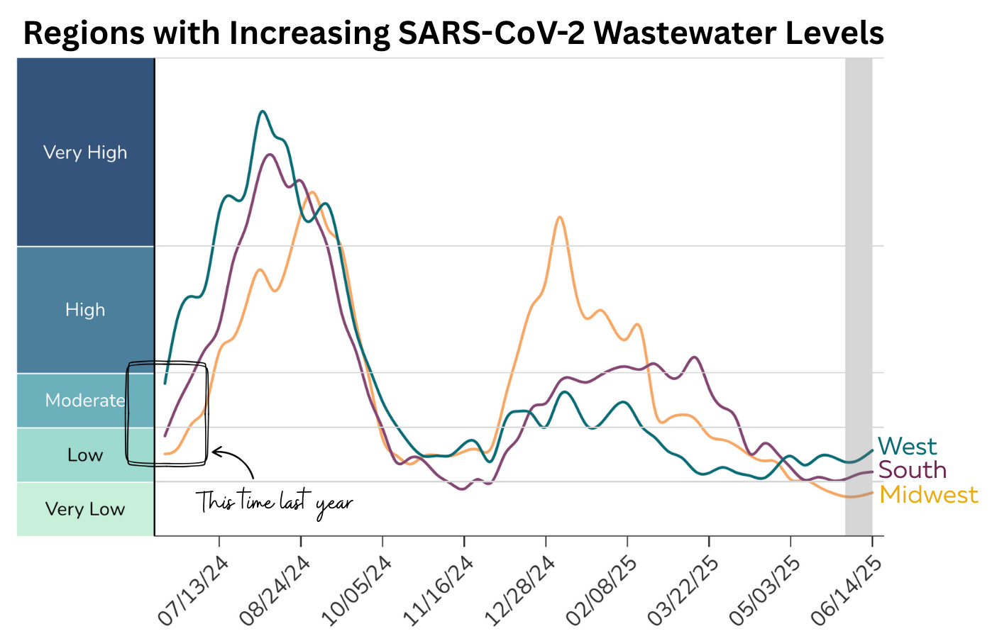 "Transmission remains “very low” or “low” across all regions. A few states (Nevada, Texas, Missouri, Mississippi, Florida, Connecticut, and Washington, D.C.) have “moderate” levels, but signals are erratic, and it’s unclear if this is a true trend or errors due to limited testing.