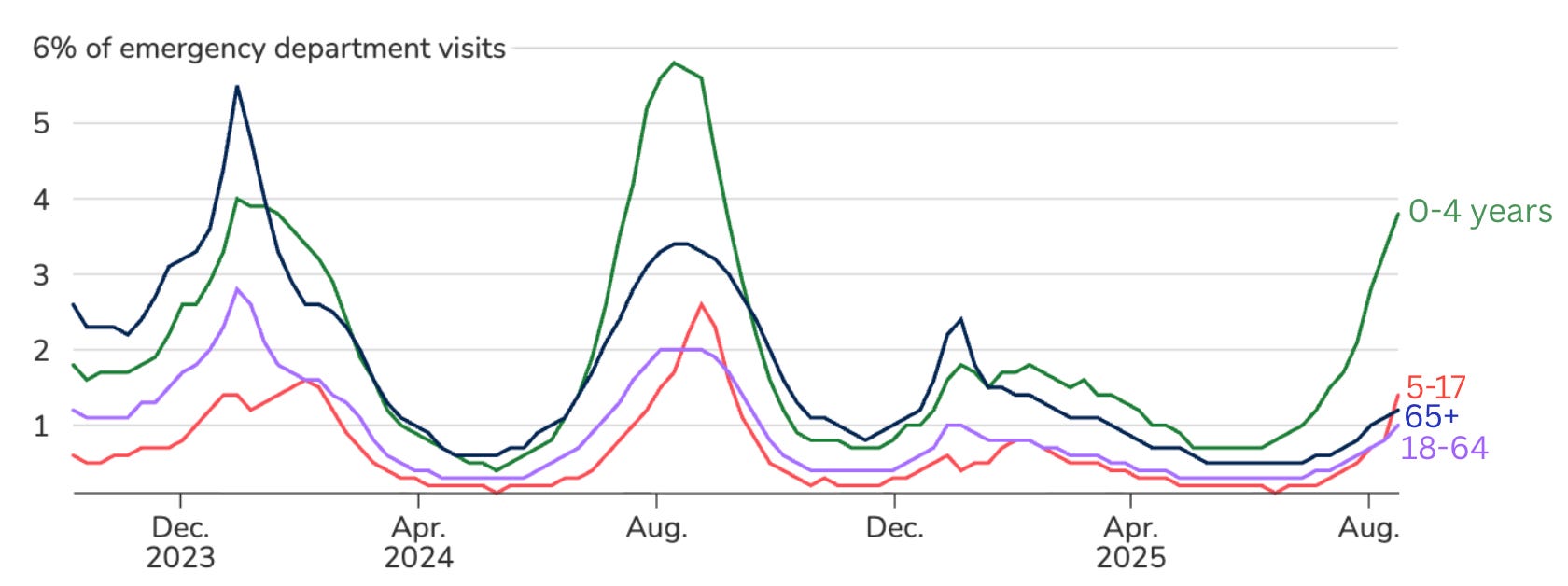 "Most people showing up in emergency departments right now are kids under 18—a pattern we’ve consistently seen during past summer waves. This is mainly because of the return to school, which expands their social networks and creates more opportunities for the virus to spread.