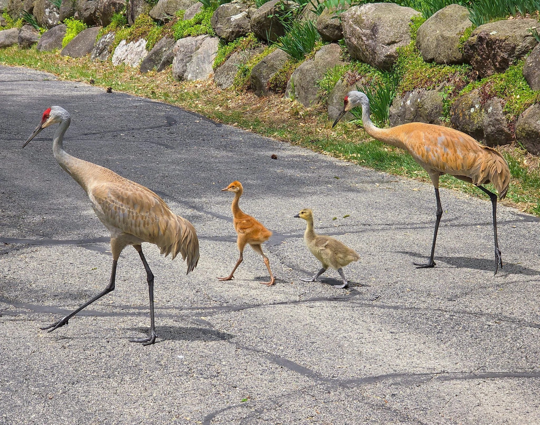 In Madison, Wisconsin, a pair of sandhill cranes is raising a Canada gosling alongside their own chick, much to the delight of neighbors and bird watchers. After taking over what they thought was an empty goose nest, the cranes ended up hatching both a crane colt and a gosling and embraced them equally. Despite differences in diet and behavior, the gosling has fully imprinted on its crane parents, who feed and protect it in this rare and heartwarming example of interspecies adoption.