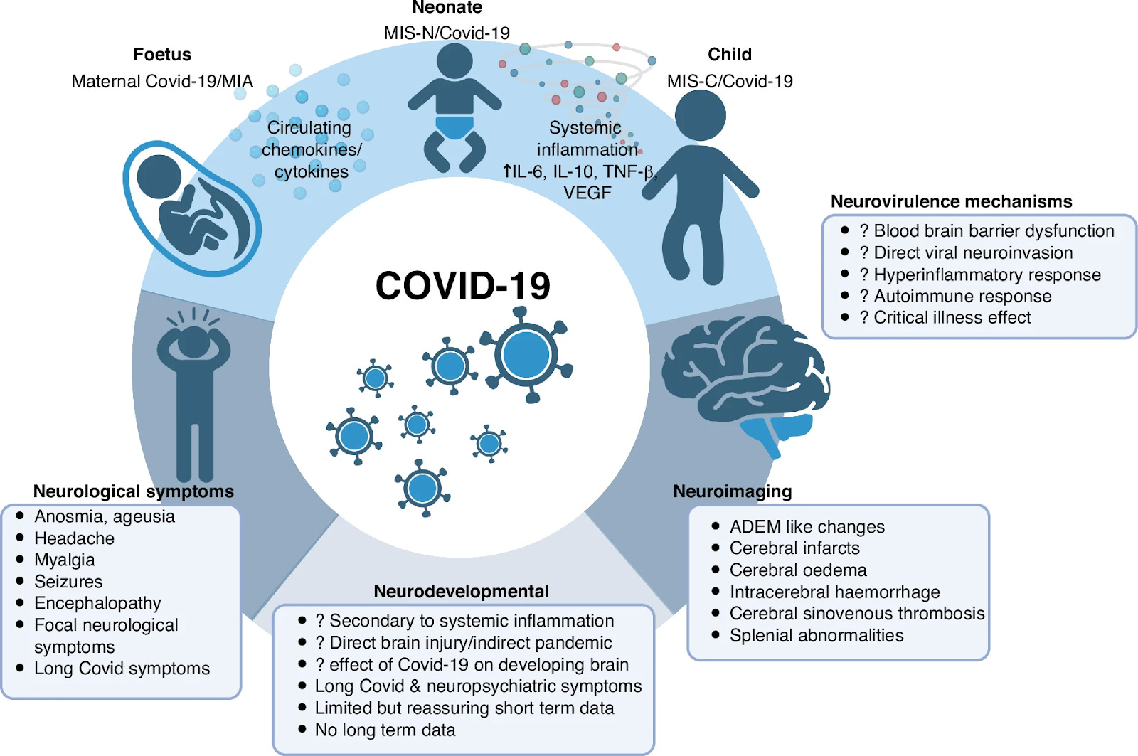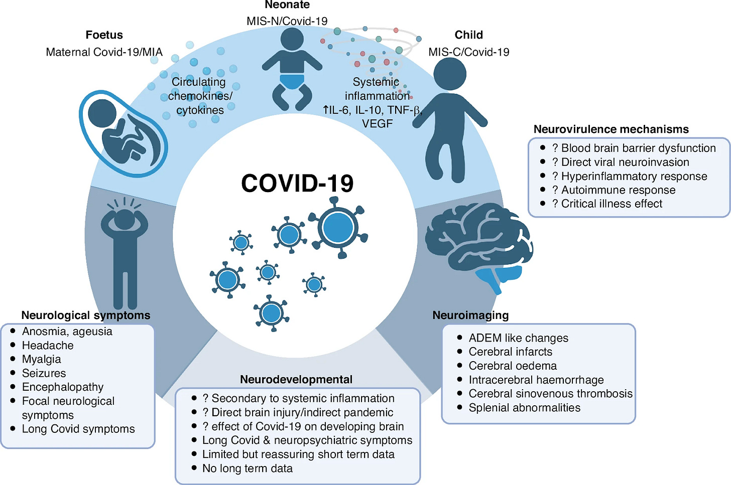 A new review examines neurological symptoms and neurodevelopmental sequelae of acute COVID infection and MIS‑C (Multisystem Inflammatory Syndrome in Children) in children. Data suggests that developing brains may be vulnerable to both direct viral and indirect immune-mediated injury from SARS-CoV-2. Many children show neurological signs such as headaches, cognitive or behavioral changes and altered neuroimaging studies after COVID infection. Long-term studies are needed to assess how COVID affects children’s brain development. The authors urge structured neurological monitoring of children after COVID infection and inclusion of children in Long COVID research.