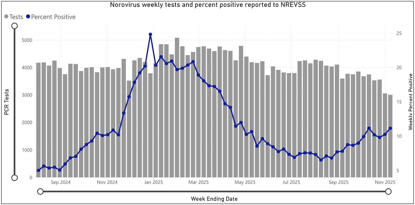 "Norovirus—the nasty, highly contagious stomach bug that causes vomiting and diarrhea—is rising across all U.S. regions, with the South hit hardest. On average, one infected person can spread it to 2–7 others. It’s a common foodborne illness. So, if you have symptoms (or recently recovered, since you can still spread it for days after they fade), avoid preparing food or drinks for others. Wash your hands thoroughly (30 seconds with soap and water) and clean bathrooms frequently with bleach-based products. Hand sanitizer won’t work against this one.