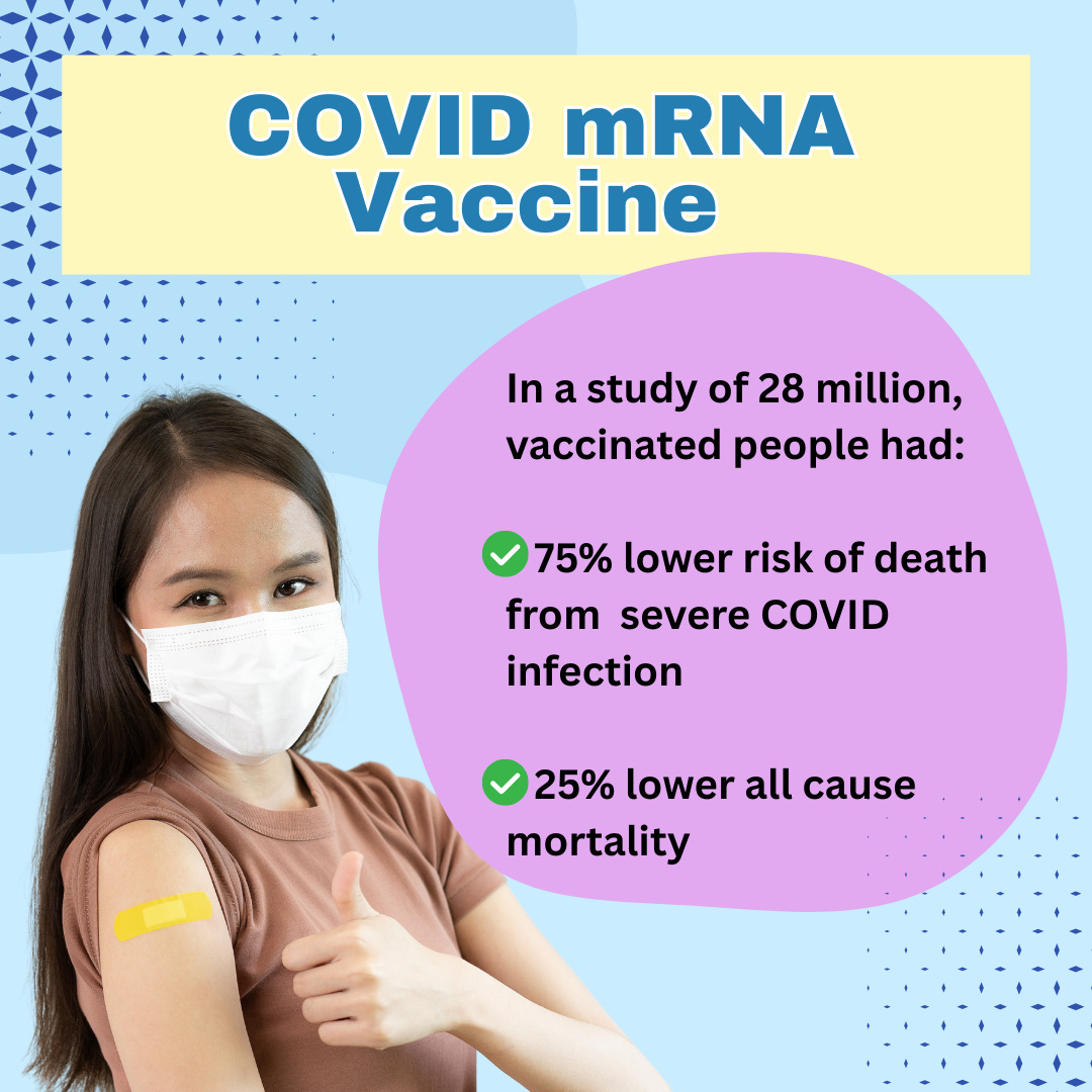 A large study of over 28 million adults in France found that those who received an mRNA COVID-19 vaccine had a 25% lower risk of death from any cause over four years compared to their unvaccinated peers.