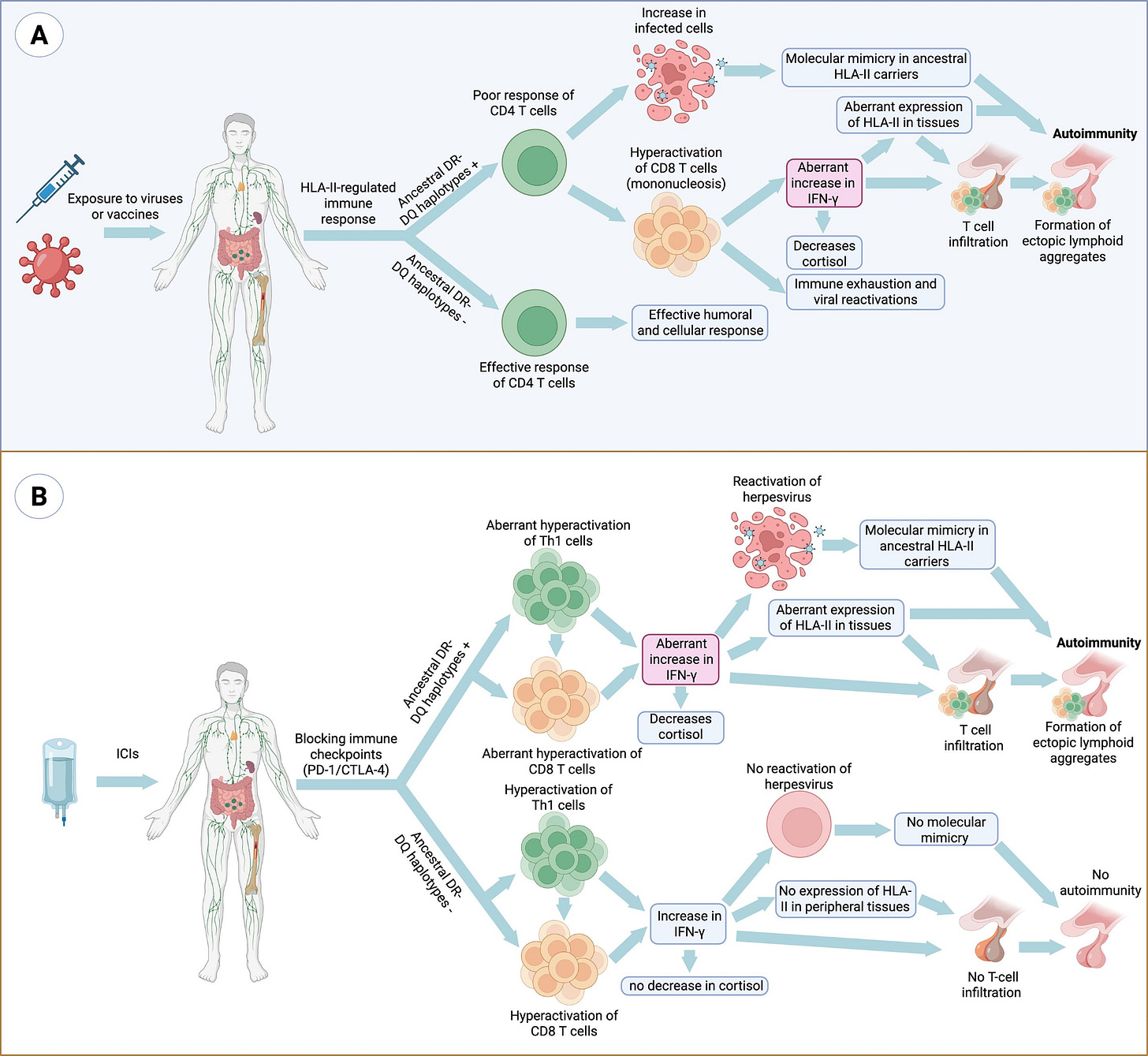A review from Spain outlines an evolutionary hypothesis that certain ancestral HLA-II haplotypes (DR2-DQ6, DR3-DQ2, DR4-DQ8) once favored for fighting infections may now predispose carriers to autoimmune diseases by boosting immune hyperreactivity. They speculate that hypocortisolism in ME/CFS and Long COVID may be related to autoimmunity directed at the hypothalamic–pituitary–adrenal (HPA) axis and that anti-M3 autoantibodies against cholinergic receptors could result in the loss of parasympathetic tone in POTS.
