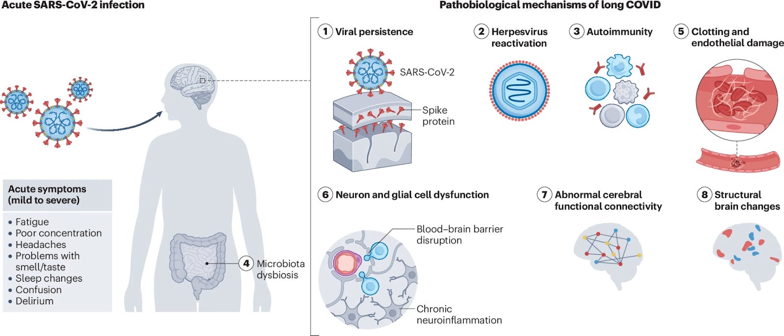 Fig. 2: Proposed pathobiological mechanisms of long COVID.