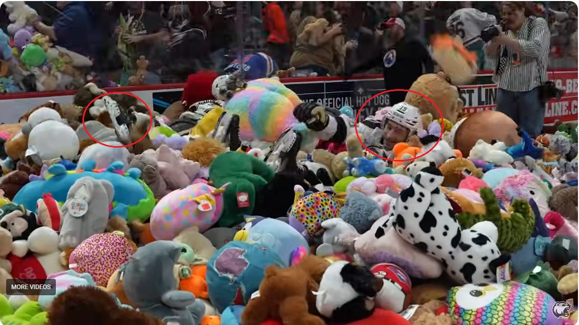 On January 4th, the Hershey Bears hockey team collected almost 82,000 stuffed animals at their annual Giant Teddy Bear Toss. After the Bears scored their first goal of the game, fans threw thousands of plush toys onto the ice which were later distributed to local charities. I’ve circled some hockey players hidden amongst the stuffed animals below.