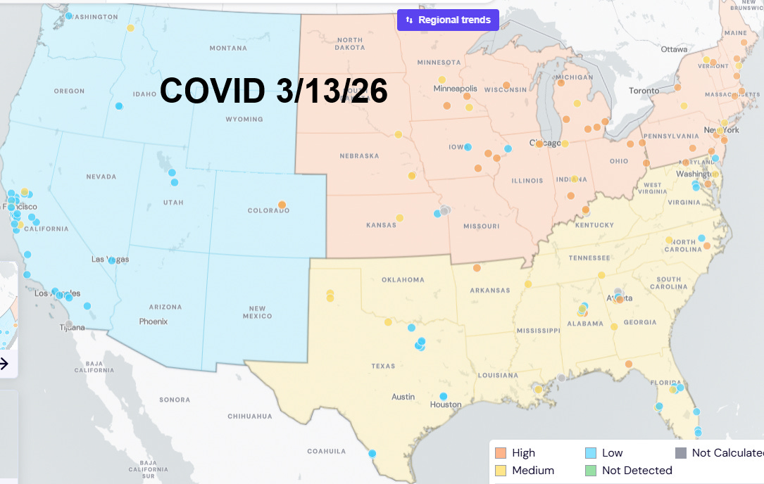 COVID in wastewater is more moderate now, as the long winter wave starts to resolve. The midwest and northeast are still most affected.