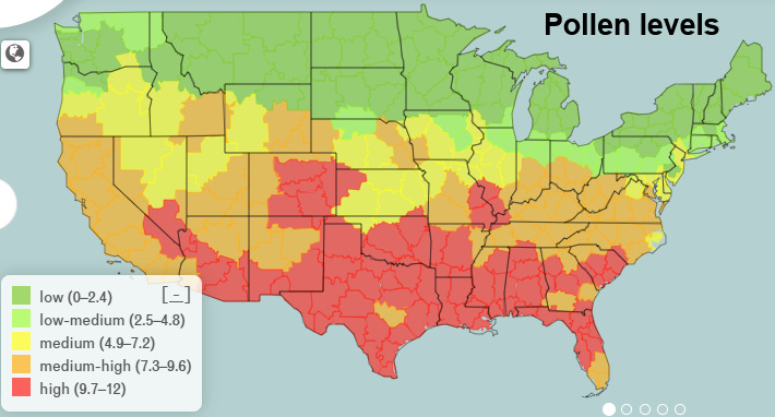 Spring flowers mean that pollen counts are increasing in many places across the country with the warmest climates seeing the highest pollen levels now.