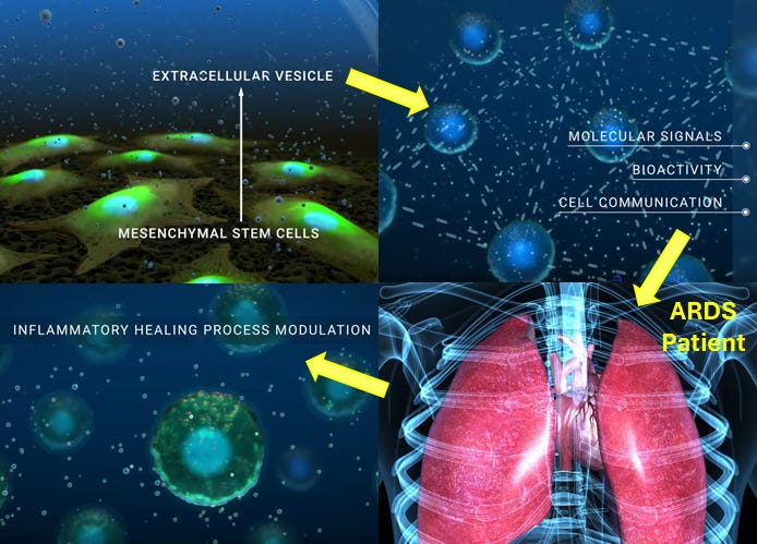 In a U.S. trial of 103 patients hospitalized with severe COVID respiratory failure, stem cell-derived extracellular vesicles from bone marrow mesenchymal stem cells (BM-MSCs) were tested for safety. Stem cell extracellular vesicle therapy was safe and well tolerated, with signals suggesting potential clinical improvement that will be tested in larger studies.