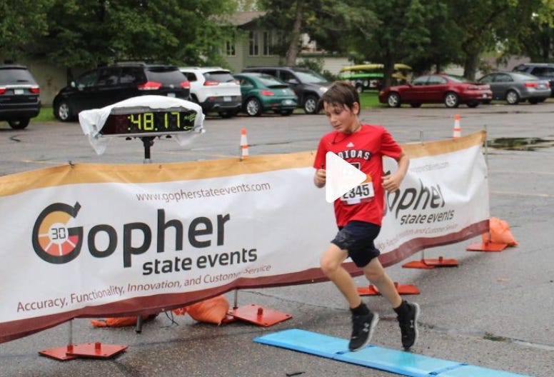 In 2019, 9-year-old Kade Lovell was supposed to run a 5K, but a volunteer accidentally sent him onto the 10K course instead. He ran the full 10K (6.2 miles) in 48 minutes and 17 seconds, crossing the finish line first and beating the second-place finisher (a 40-year-old man) by nearly a minute.