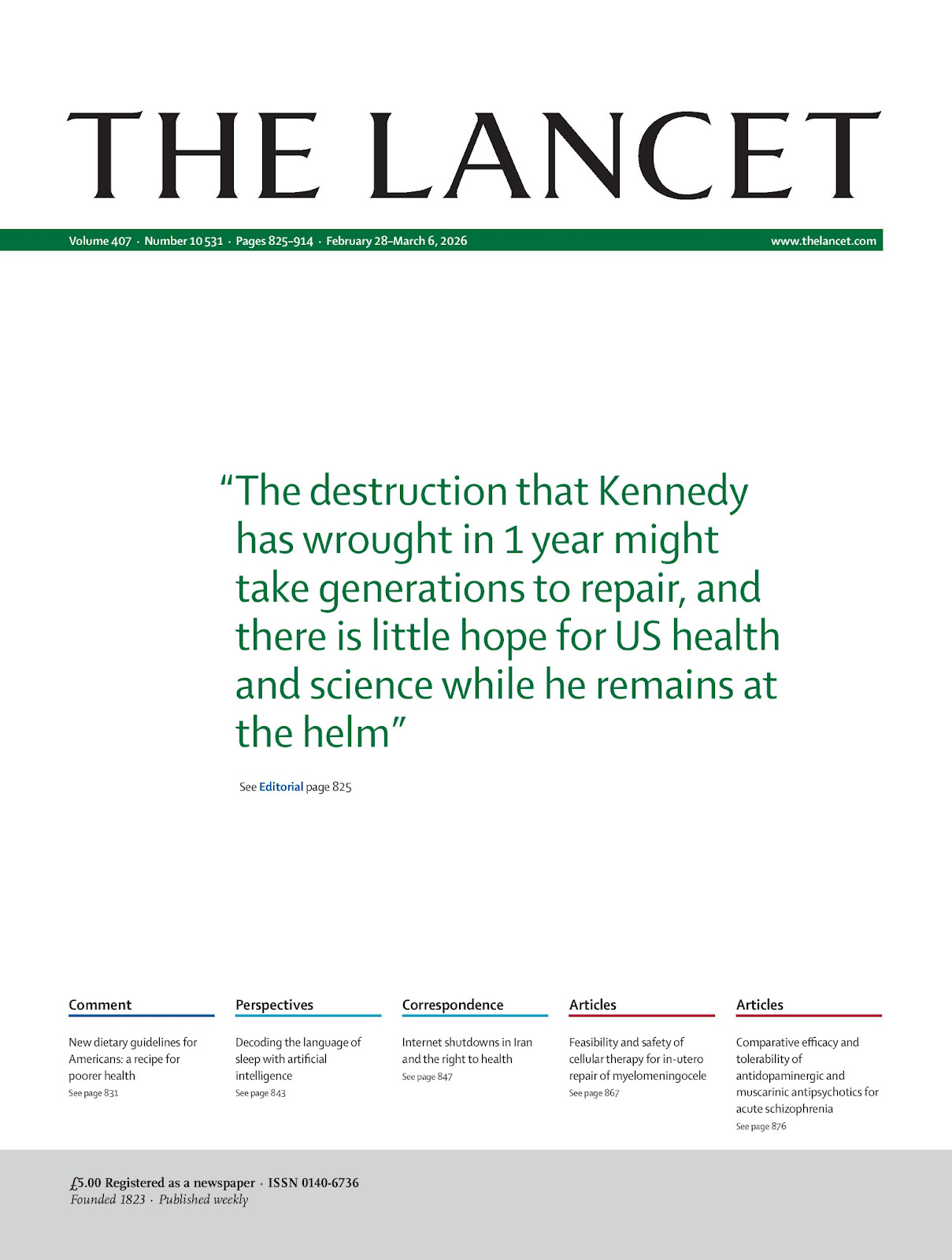 This week, the Lancet featured this quote on its front cover: