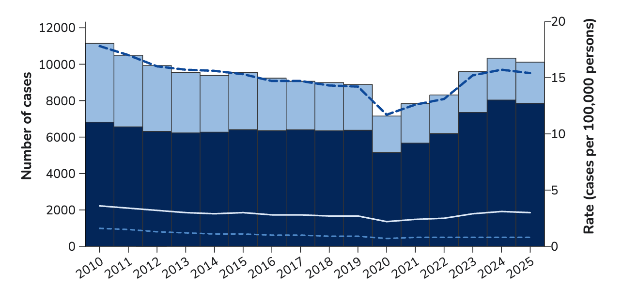 TB rates are falling after years of post-pandemic rise. New CDC data show that last year, 10,260 TB cases were reported, representing a 2% decline in the national rate compared with the year before. Cases fell across 26 states and Washington, D.C.