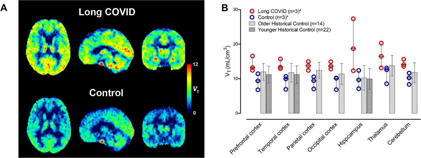 Stony Brook University in New York studied 24 older adults and found that those with Long COVID had significantly higher levels of depression and fatigue compared to controls, with a subset of 6 patients showing increased neuroinflammation on PET imaging. These preliminary findings suggest that persistent neuropsychiatric symptoms in older adults may be linked to ongoing brain inflammation, though the small sample size limits generalizability.