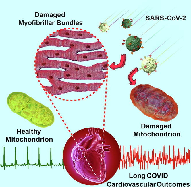 Electron microscopy shows that SARS-CoV-2 harms myofibrillar bundles in heart muscle and also severely damages mitochondria, the energy producers for the heart cells. This can lead to Long COVID/post-COVID cardiovascular symptoms and heart arrhythmias.