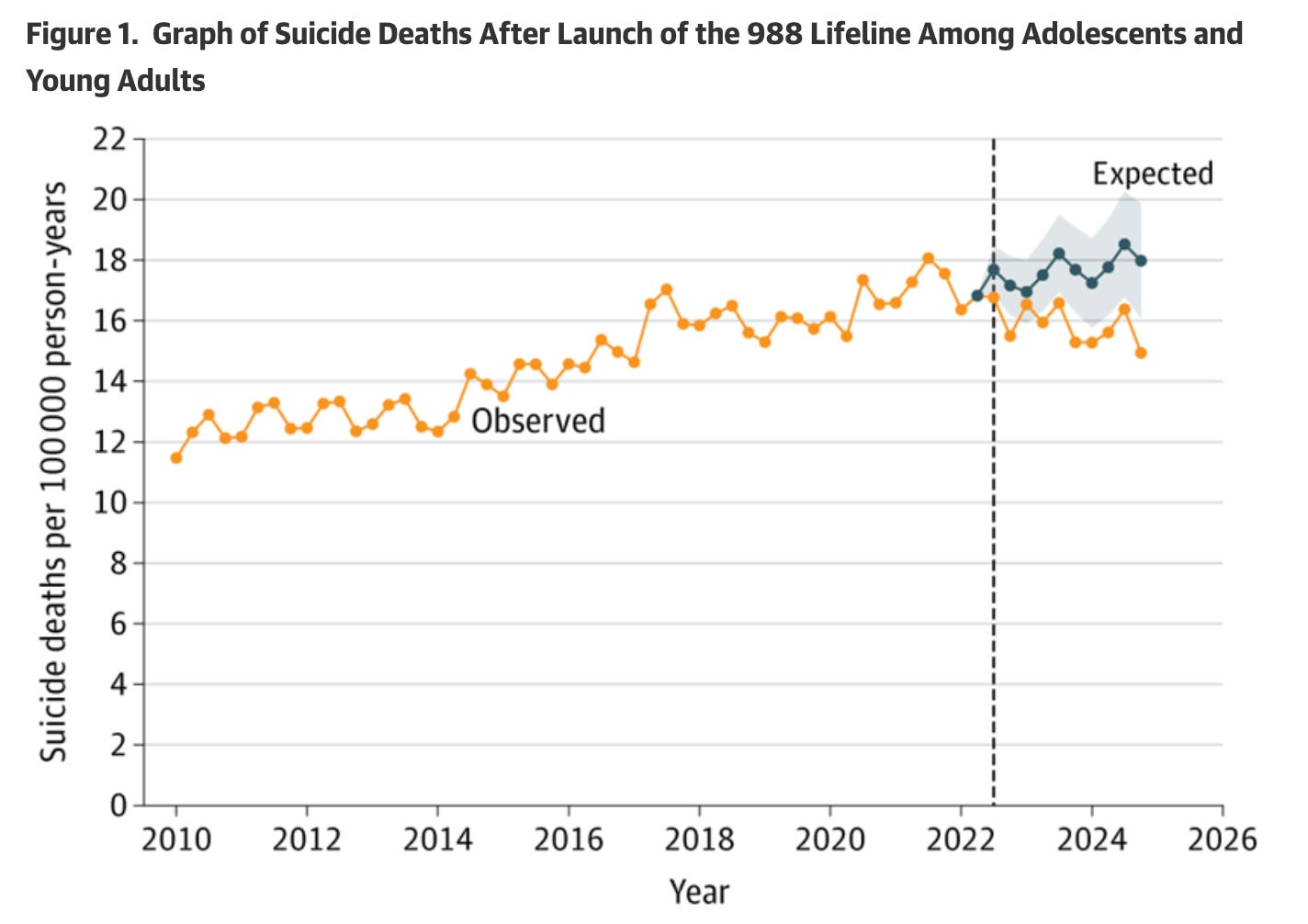Suicide prevention is working. A new study found that roughly 4,300 fewer teens and young adults died by suicide in the years following the launch of the 988 Suicide and Crisis Lifeline. Tell people about this resource.