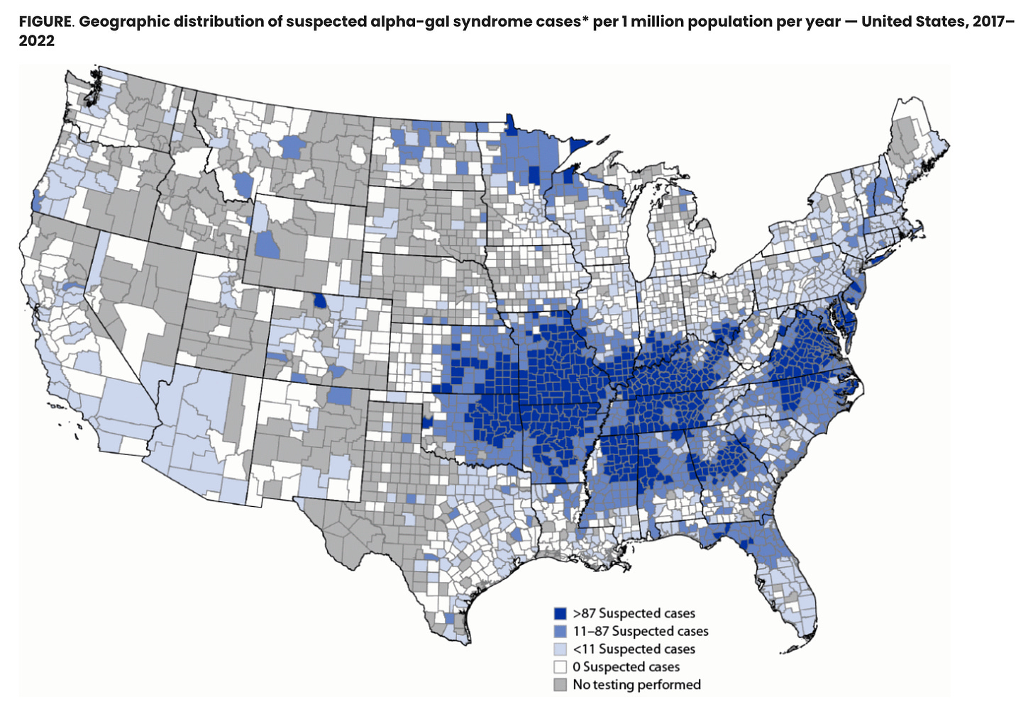 Is alpha-gal actually increasing, or does it just feel that way? Both. Awareness has grown enormously in the last few years, which means more doctors are testing for it, and more cases are being caught that would previously have been written off as mystery GI issues or unexplained allergies. But the underlying cases are also genuinely rising. The lone star tick’s range is expanding northward and westward, driven largely by climate and deer population changes. CDC estimates there are around 450,000 cases in the U.S., but that’s almost certainly an undercount.