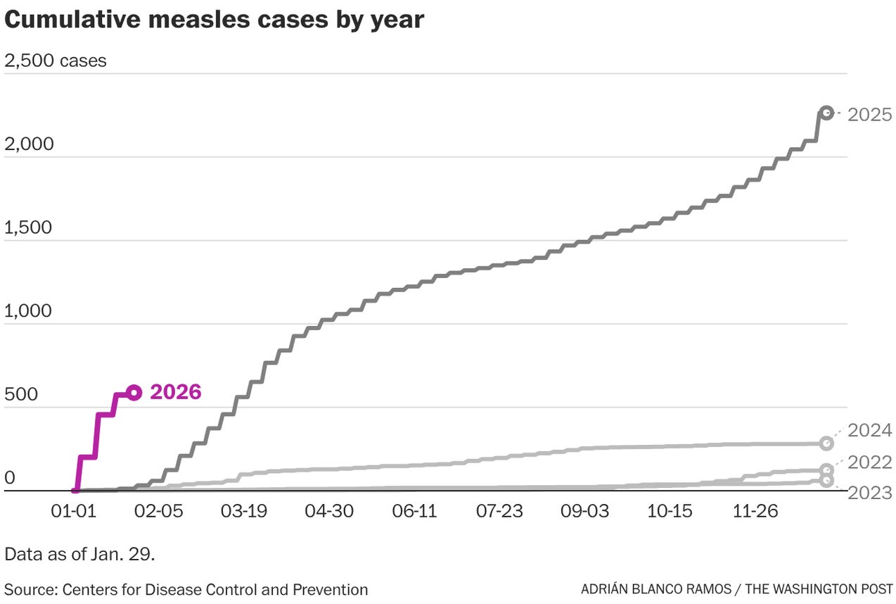 The CDC reported that as of January 29, 2026, 588 confirmed measles cases