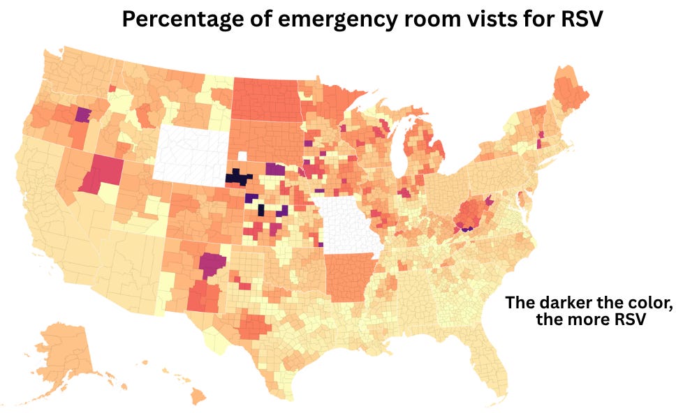 RSV typically peaks in winter and is gone by March. This year, it's still elevated across much of the country in April. This matters because RSV is the leading cause of hospitalization in infants.